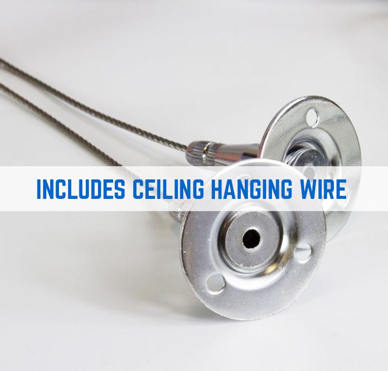 - Adjustable hangers enable Portrait or Landscape mounting. Double-sided version comes complete with ceiling hanging kit